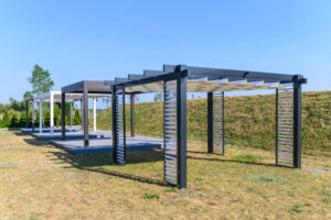 Die JORD römische Pergola zeichnet sich durch eine hohe Beständigkeit gegen wechselnde Witterungsbedingungen aus. Sie ist aus hochwertigsten Materialien gefertigt, dank denen Wind und Regen ihr nicht schaden und sie behält ihr tadelloses Aussehen für viele Jahre.